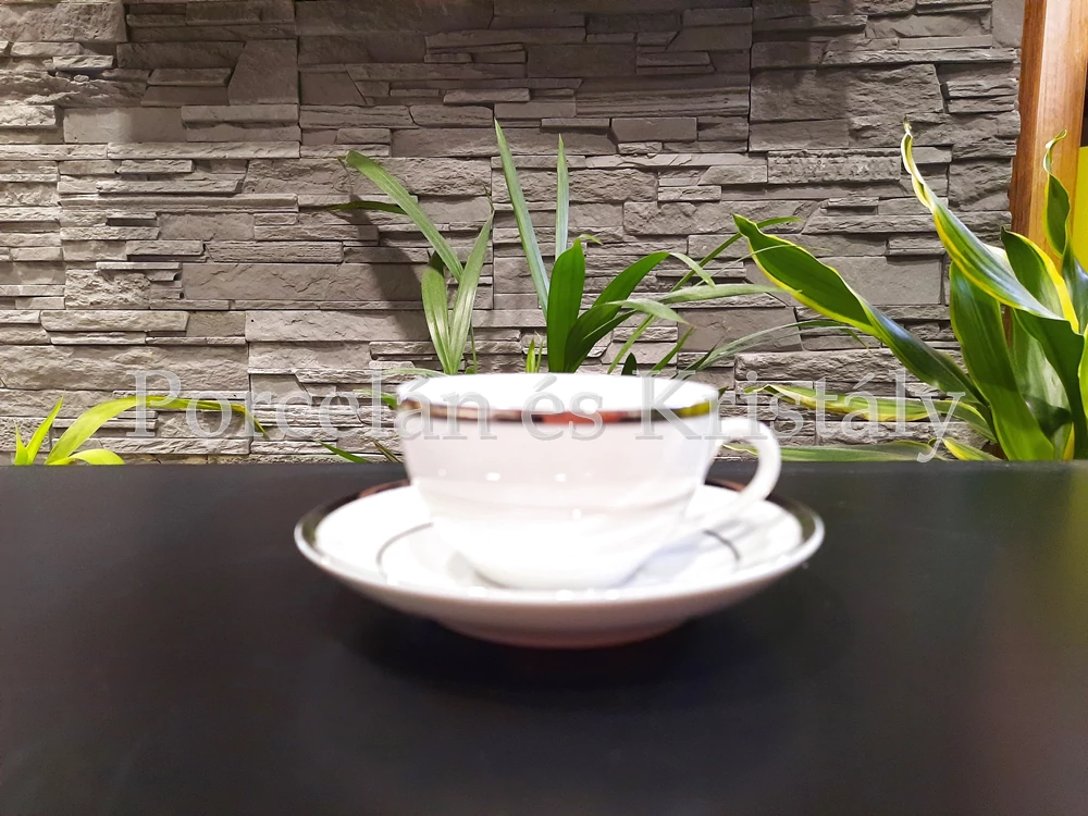 9100/3384 Fehér-Platina Mokkacsésze + alj